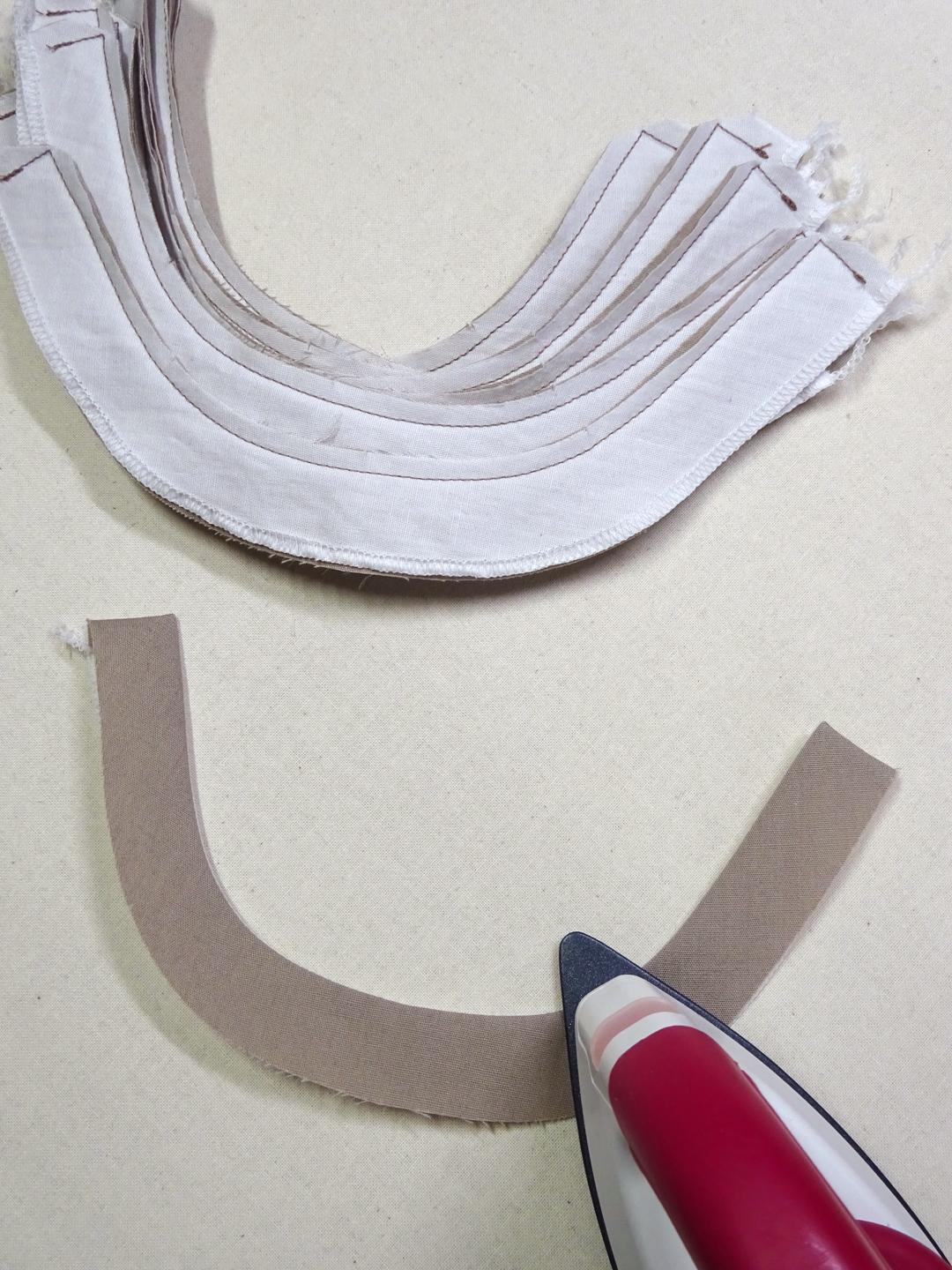 Finally, I fold the seam allowance at the lower front edge of the inner waist piece diagonally (to keep it from showing on the right side).