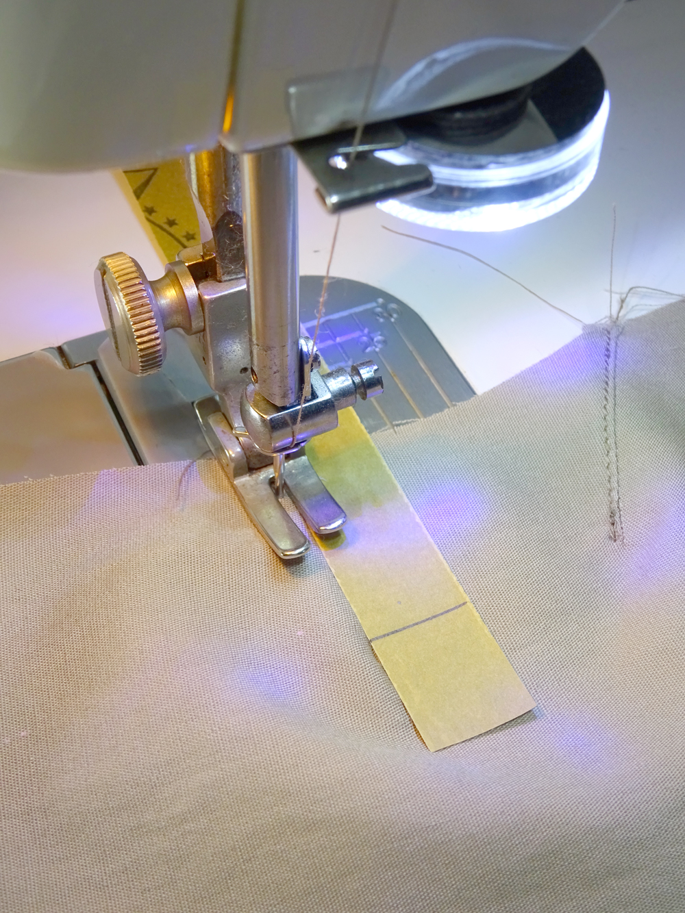 最後に紙やすりをガイドに、ダーツ際にステッチをかけてダーツは完了です。
