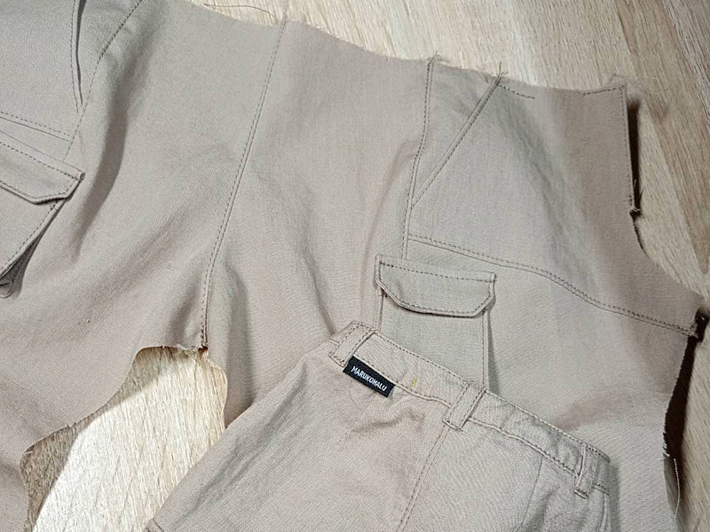 Today, I’m working on the back crotch seam of the outdoor pants. I sew the left and right back crotch pieces together, right sides facing.
