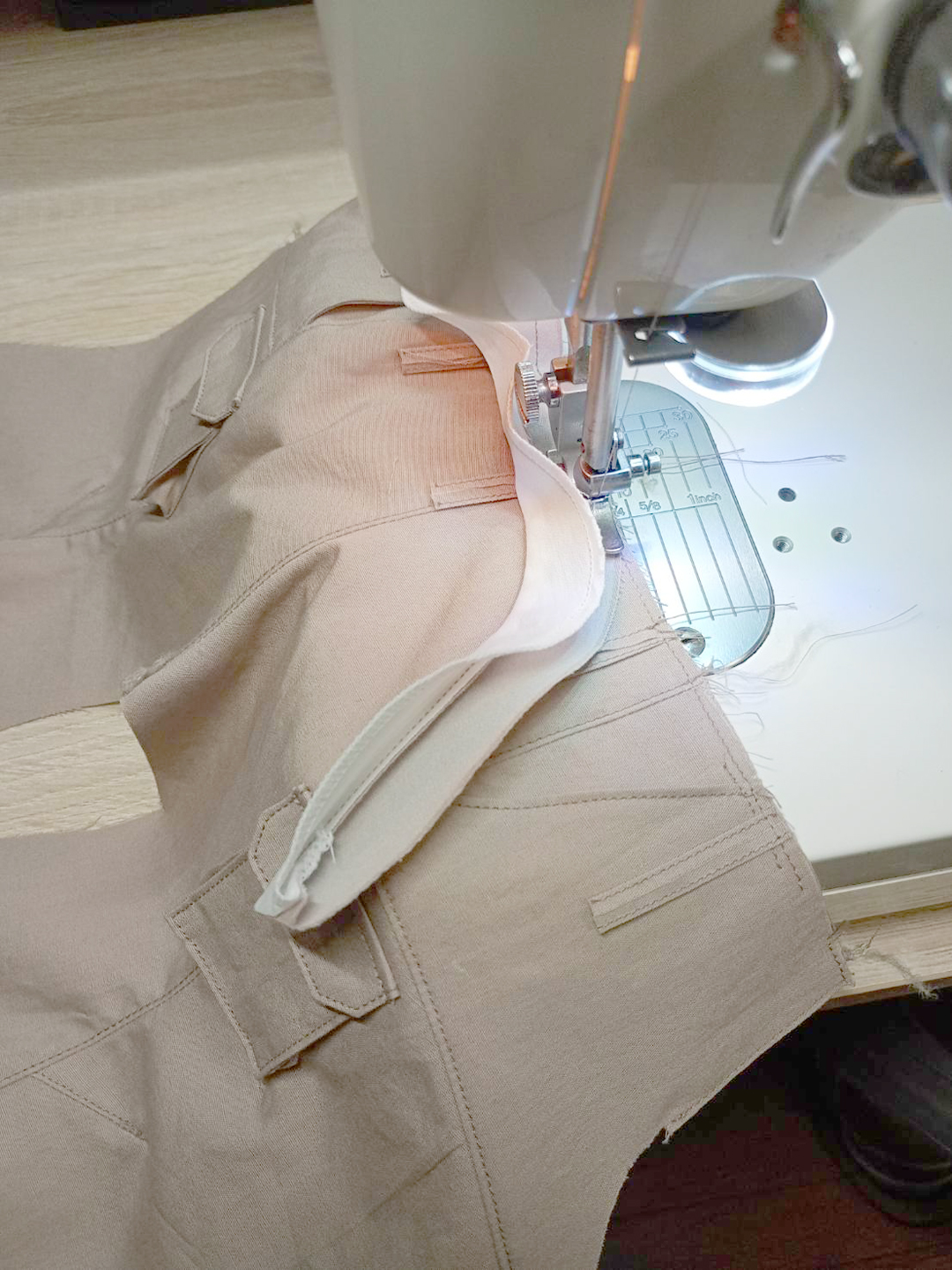 Today, I’m attaching the waist piece of the hiking pants.