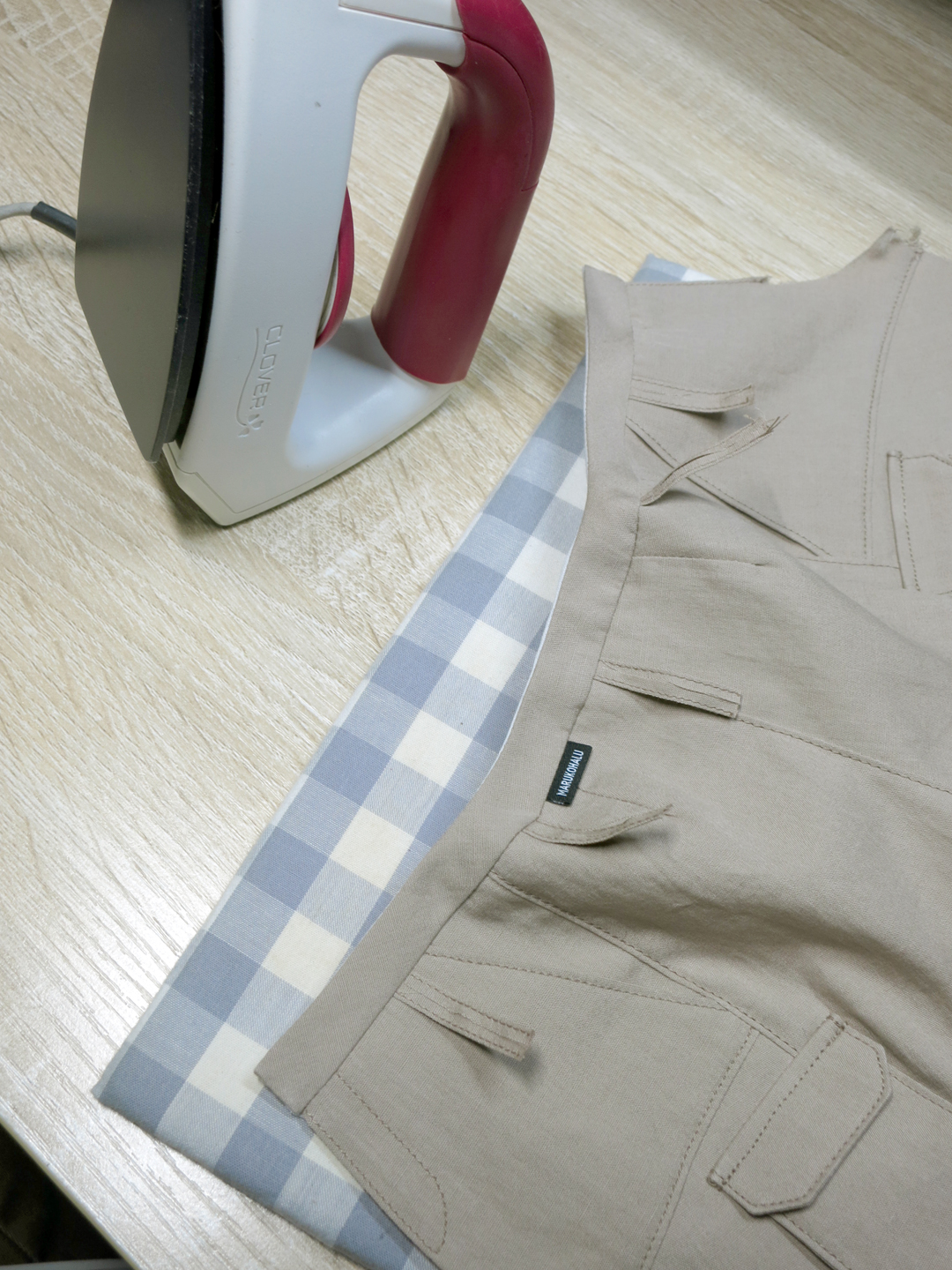 ウエストパーツの形をアイロンで整えます。