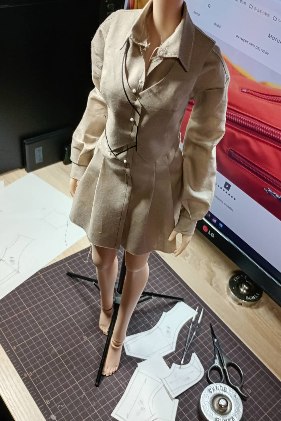 【Doll Outfit Production|ドール服制作】Shirt Dress and Vest | シャツワンピ & ベスト Posted on 2026年3月14日 by MarukoHalu Shirt dress & vest in progress. シャツワンピ & ベストを制作中。