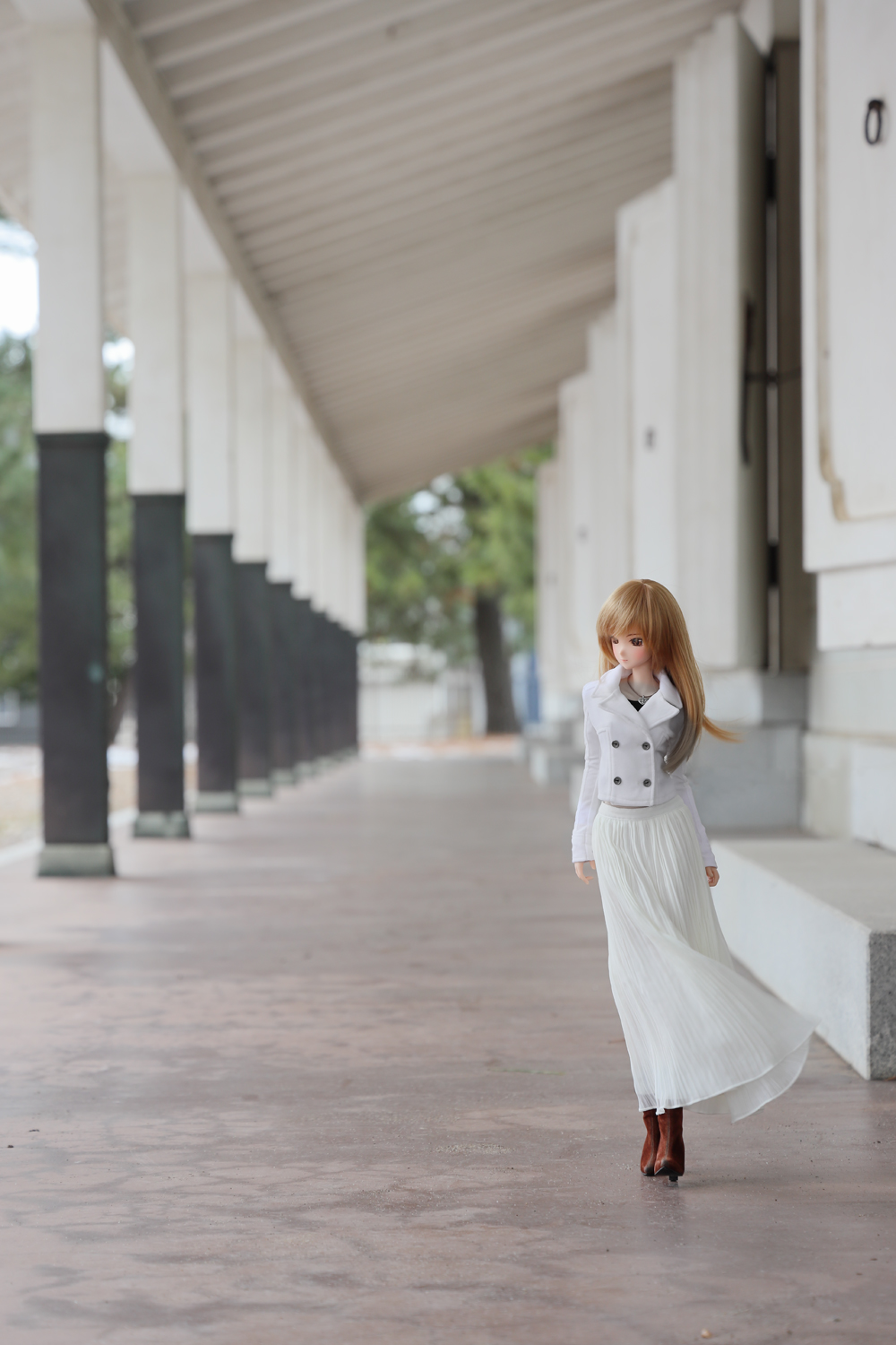 Mei is dressed in all white today.