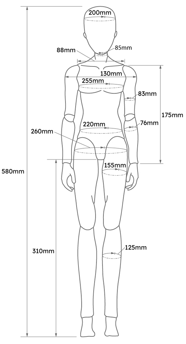 ※寸法はドールボディーの実寸で、衣服の寸法とは異なります。