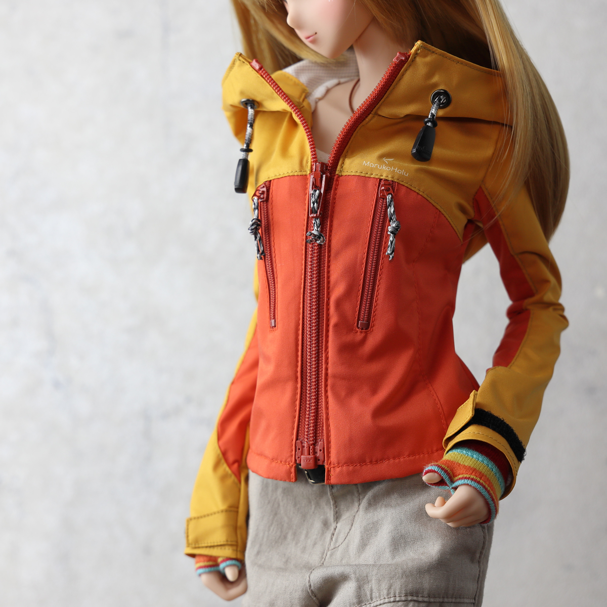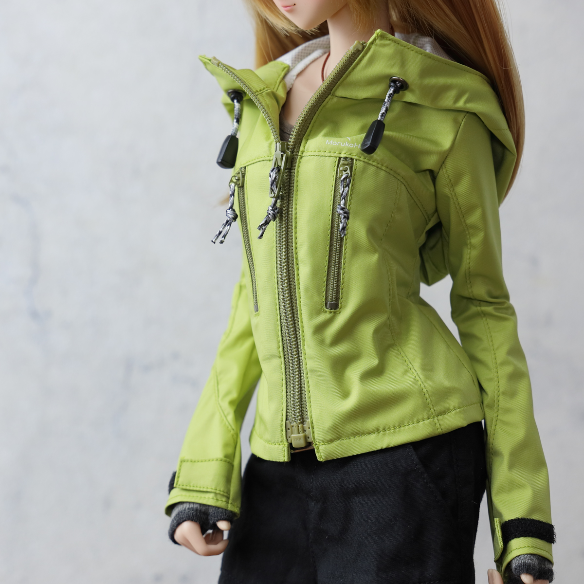 Inspired by modern lightweight, high-performance shell jackets designed for everything from casual hiking to serious mountain trekking. This concept has been reinterpreted in a 60cm doll size as the “Just One More Ridge Jacket.”