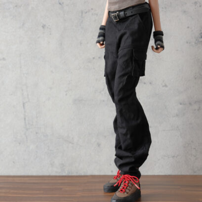 The hem creates a “slouchy” look like military pants when tucked into boots. The extra fabric creates natural wrinkles and a three-dimensional effect, giving the pants a realistic expression.