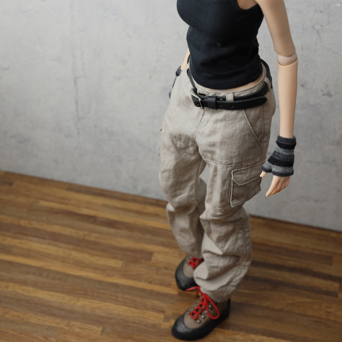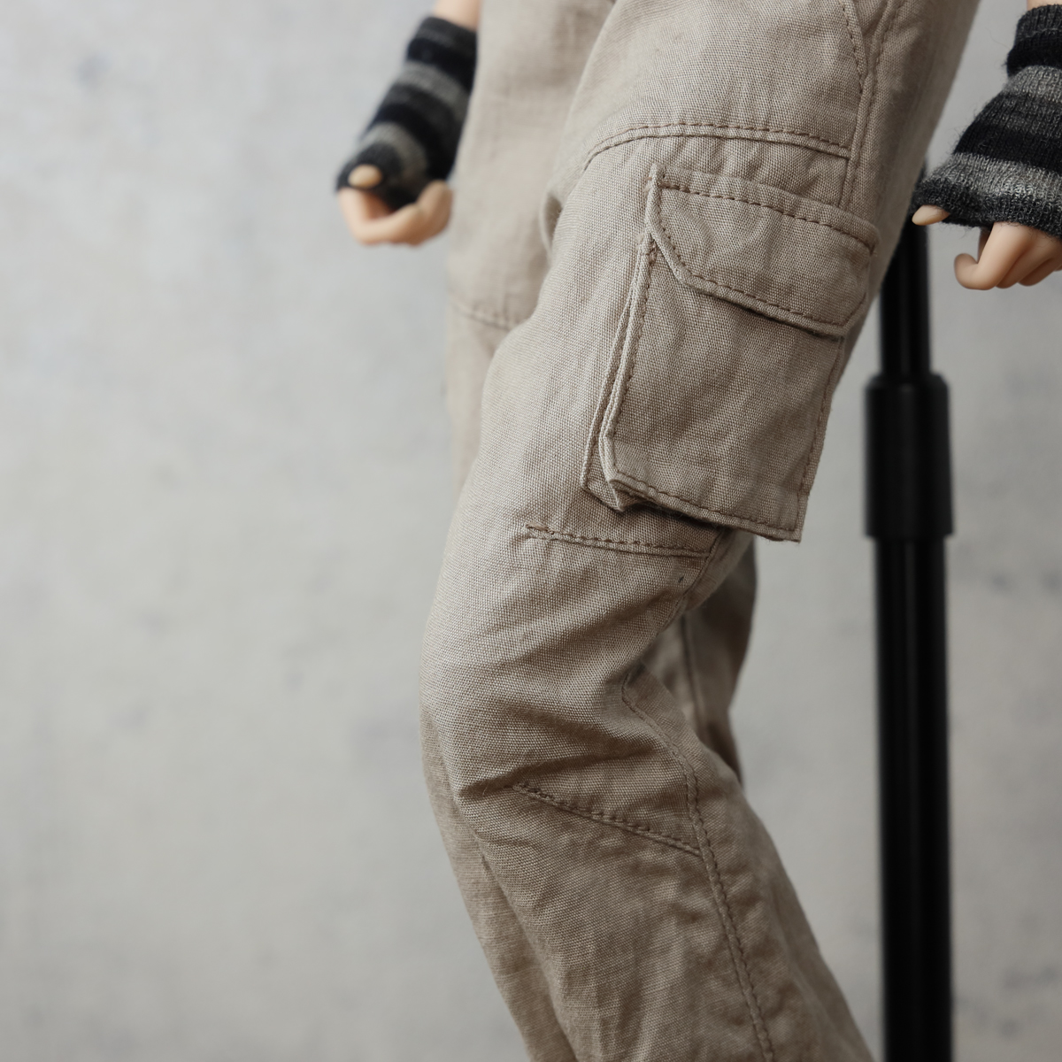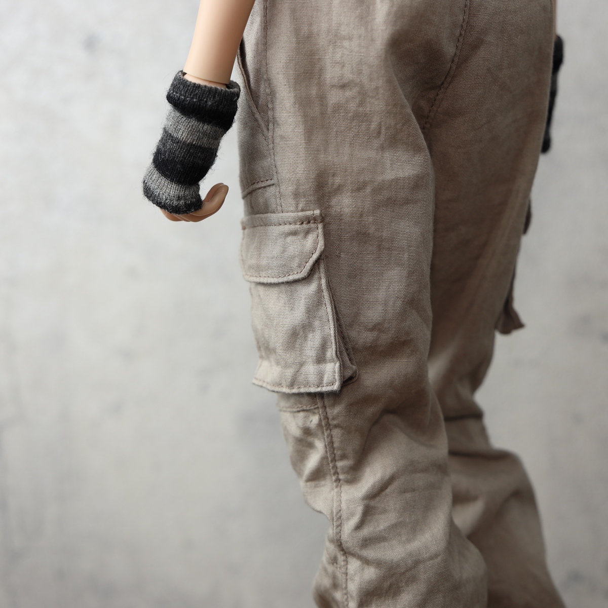 Standing, walking, crouching. In human clothing, darts are a detail to support movement. For doll clothing, however, they provide a three-dimensional shape to the knees, naturally creating wrinkles and shadows within the pants themselves.
