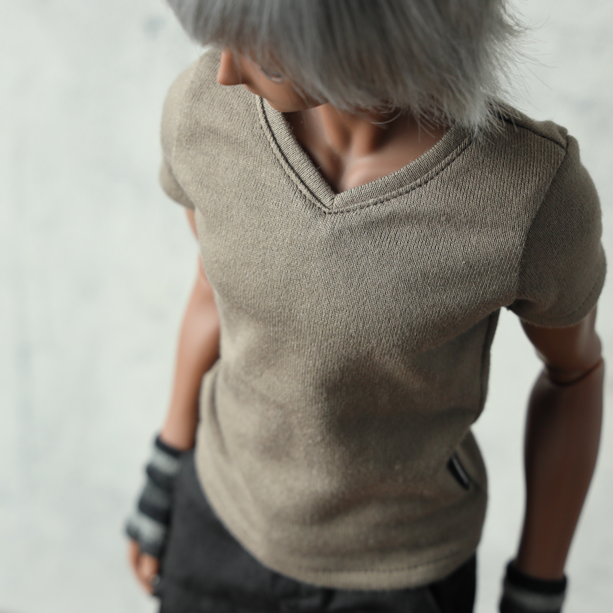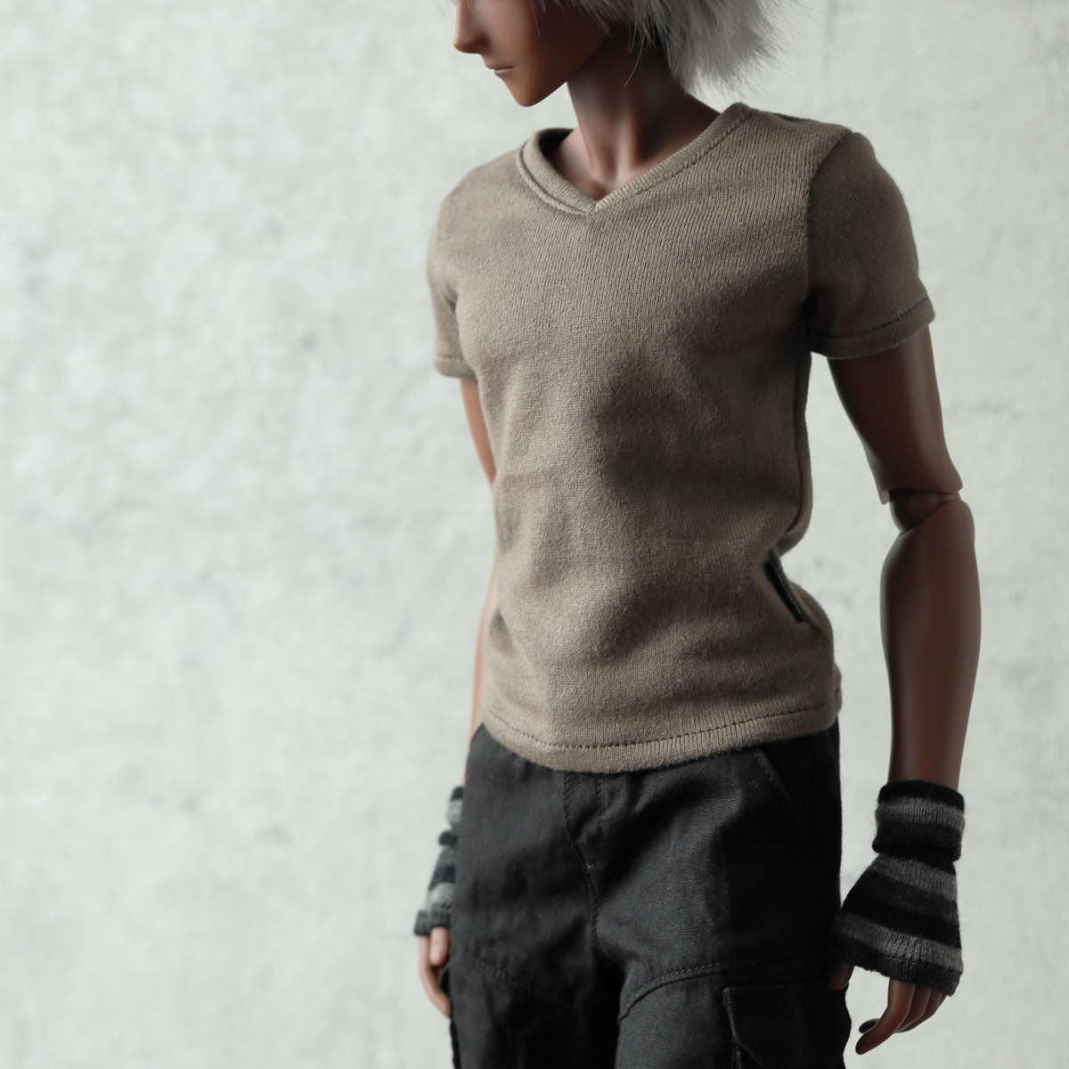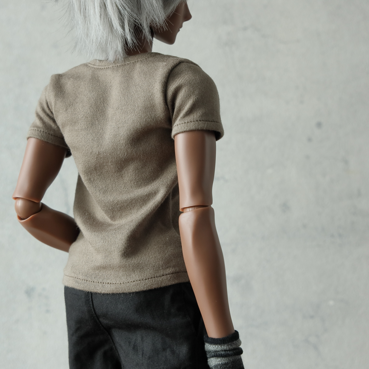 Boyボディならではの厚い胸板を強調しつつ、バストから裾にかけてはタイトになりすぎないゆとり感を持たせています。丈はミディアムに設定。裾を少しダブつかせて着せるとリアル服のような動きのある自然な陰影が楽しめます。